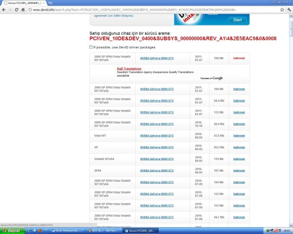 ve Sitedeki arama yerine yapıştırın driveriniz orda bulunmaktadır…